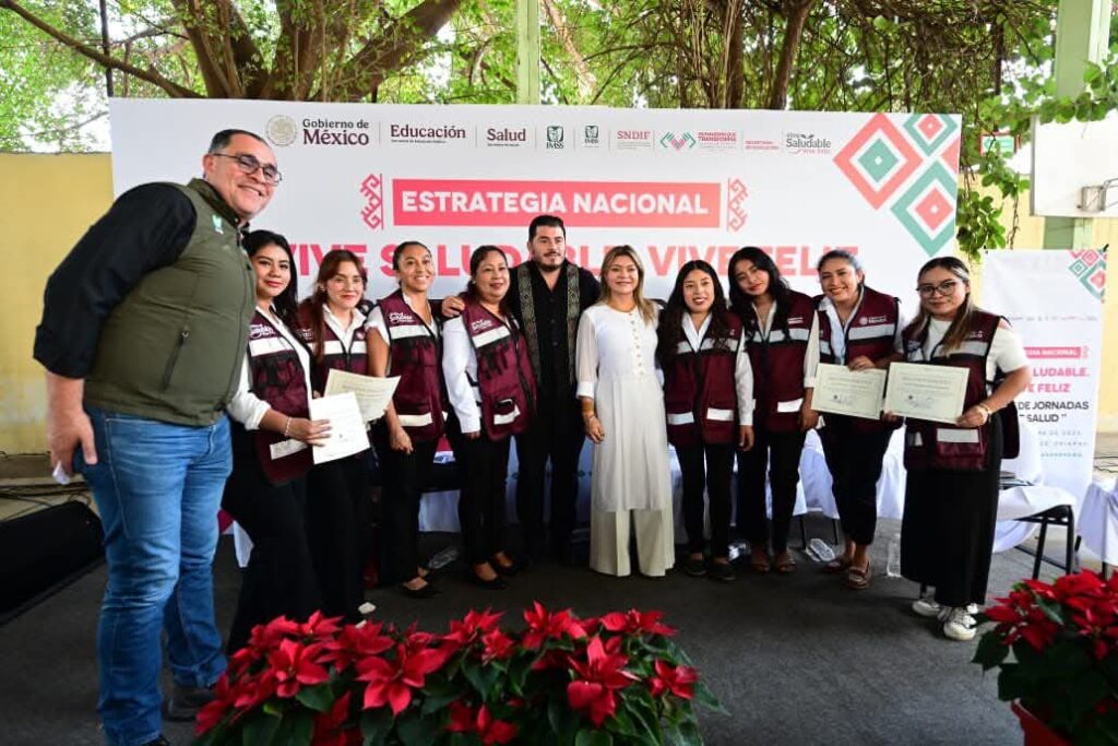 “En Chiapas trabajamos como un solo equipo, atendiendo con sensibilidad y compromiso las necesidades de la gente. Hoy, hombres y mujeres extraordinarios muestran hasta dónde podemos llegar cuando ponemos al centro a las infancias y adolescencias de México”, expresó Sofía Espinoza Abarca, esposa del gobernador Eduardo Ramírez Aguilar, durante el cierre estatal las jornadas de salud de la Estrategia Nacional “Vive saludable, vive feliz”.