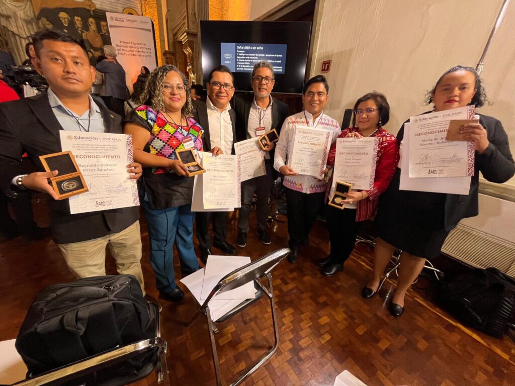La Secretaría de Educación de Chiapas, encabezada por el Dr. Roger Mandujano, celebra con orgullo el reconocimiento otorgado a las y los docentes María de Jesús Sánchez Bolainas, Tania Yazmín Díaz Molina, Julio César Espinosa Martínez, Alejandro Gutiérrez Gallegos, Lucía Yaleniq Velasco Gutiérrez y Reynaldo Baltazar Pérez Sánchez, quienes fueron distinguidos en el Primer Encuentro Nacional del Reconocimiento a la Práctica Educativa 2025, celebrado en la Ciudad de México.