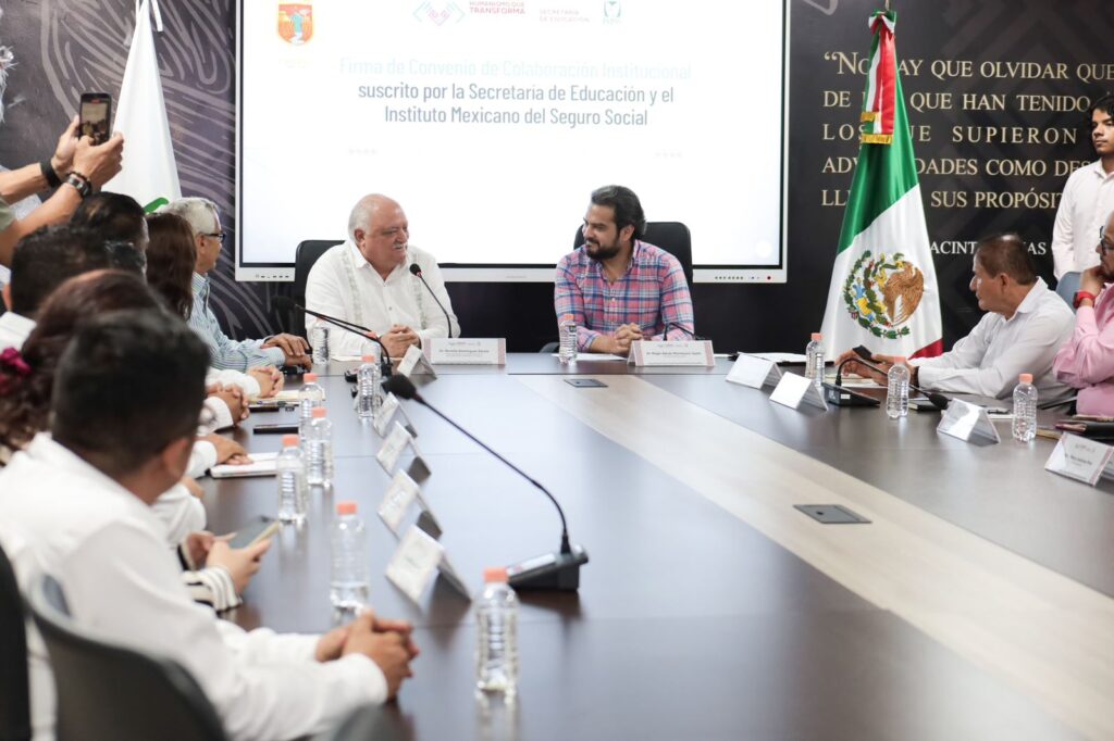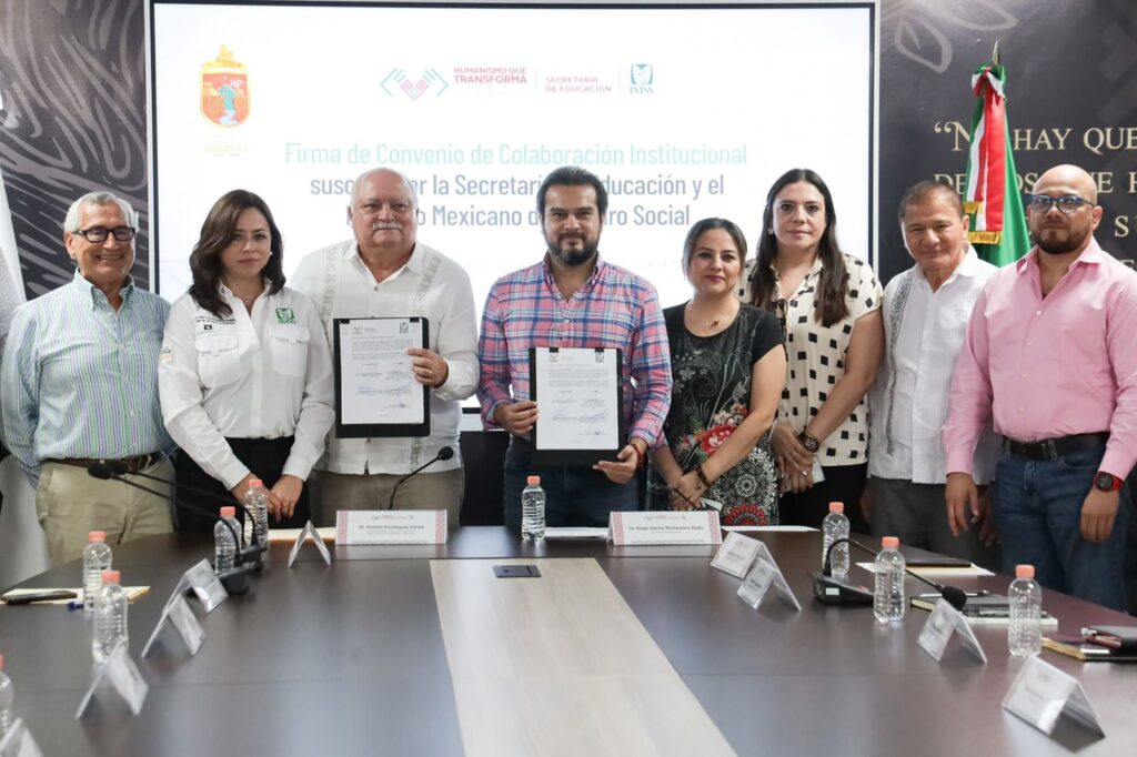 Desde la Sala “Jacinto Arias”, la Secretaría de Educación se consolidó esta alianza estratégica con el IMSS, con el objetivo de posicionar a Chiapas como referente nacional en la articulación efectiva entre educación y salud, convirtiéndose en la primera entidad federativa en dar este significativo paso.