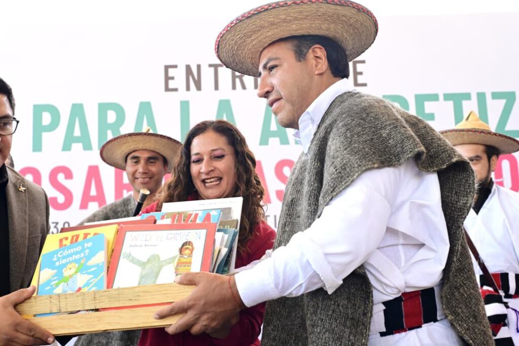 Finalmente, agradeció que se haya tomado en cuenta a su comunidad y a las escuelas de la región. “Así, nuestras niñas y niños pueden aprender, soñar y crecer entre las páginas de estos libros”, expresó, al recibir una dotación de más de treinta ejemplares impresos del Fondo de Cultura Económica.