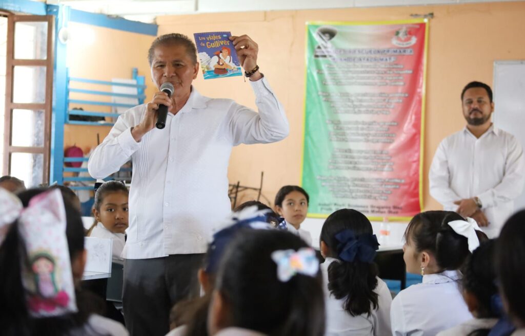 Después del acto cívico, el subsecretario llevó a cabo la actividad “Leyendo por la Paz” con las y los estudiantes de cuarto grado, un programa impulsado por el titular educativo estatal que promueve la lectura, la reflexión y el diálogo a partir de diversos títulos. En esta ocasión, se trabajó con Los viajes de Gulliver, de Jonathan Swift.