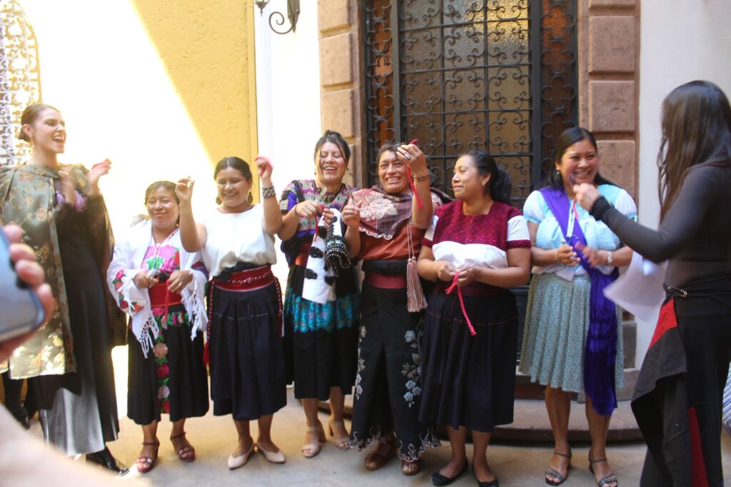 Participaron en la presentación: Juana López Díaz (telar de cintura) y Eloisa Ara (bordadora), co-dueñas de Juxta Nation; Tania Gómez, de Dos Tierras (artesana bordadora); María Gómez, de NGO Impacto (tejido en telar de cintura y brocado); Margarita Espinoza, co-dueña de Juxta Nation (bordadora); y Margarita López, de Kip Tik (artesana tejedora). Todas ellas representan la fuerza viva de las tradiciones textiles de los Altos de Chiapas.