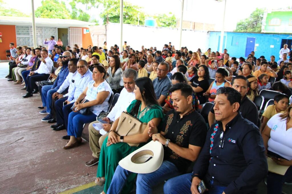 Durante el acto simbólico estuvieron presentes: Raúl Eduardo Bonifaz Moedano, titular de la Oficina de Enlace Educativo en Chiapas; Noé Ramírez, director de Educación Primaria Federal; Ramiro Posada, en representación de la Subsecretaría de Educación Estatal; Carlos Blas, director de Educación Secundaria y Superior; Héctor Manuel Martínez Ruíz, jefe del departamento de secundarias generales; Francisco Medina, jefe del Sector 004 de Primaria Federal; además de autoridades educativas, docentes, estudiantes y madres y padres de familia.